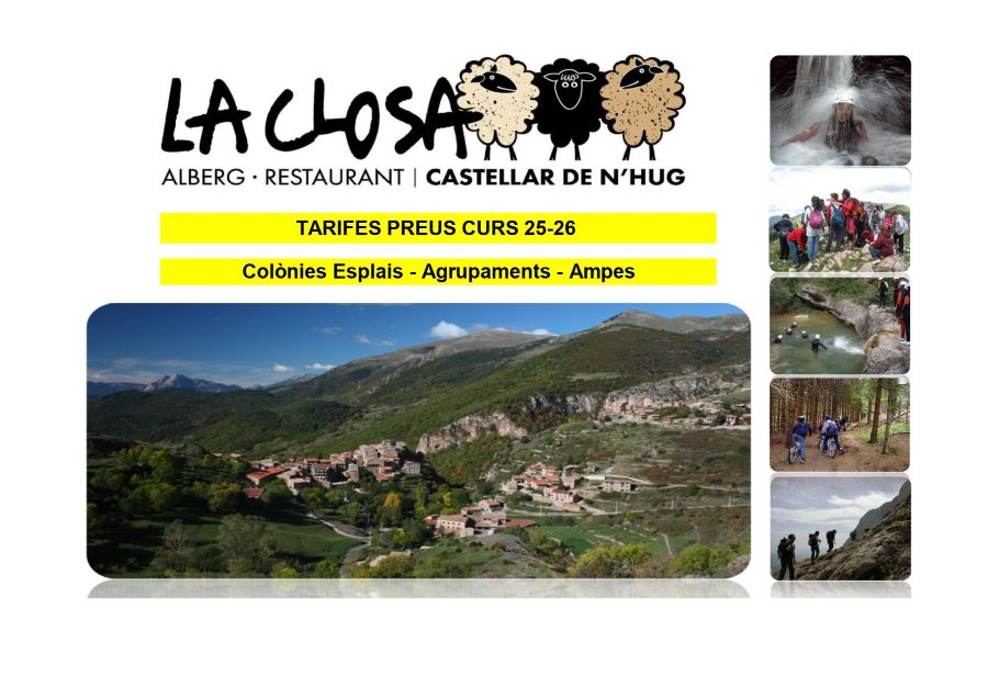 Castellar de n’Hug, dins del Parc Natural del Cadí Moixeró, amb les fonts del Llobregat, el seu nucli medieval, el seu paisatge, la seva gent … conformen tot plegat una magnífica destinació per organitzar les vostres colònies, ja siguin per Setmana Santa, estiu, hivern ….